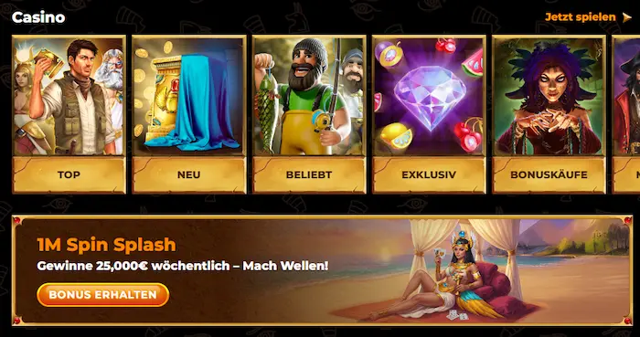Das Amun Ra Casino offeriert eine umfangreiche Selektion an Spielen, die diverse Vorlieben der Nutzer adressieren. Die Lobby ist strukturiert und ermöglicht den Zugang zu verschiedenen Spielkategorien.